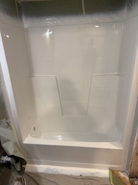 Fiberglass Tub Shower repair refinish and soon updated plumbing.. Save time and money with refinishing and keep your one piece unit! One piece unit always better than multipiece . Remember what you already have in your home is usually better than new..